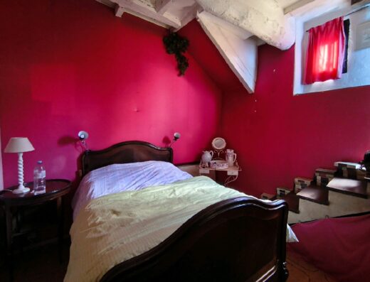 À létage : Un couloir dessert trois chambres spacieuses, dont une avec balcon, une salle deau avec toilettes.
